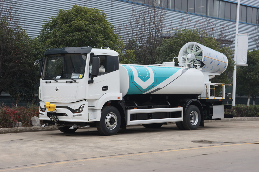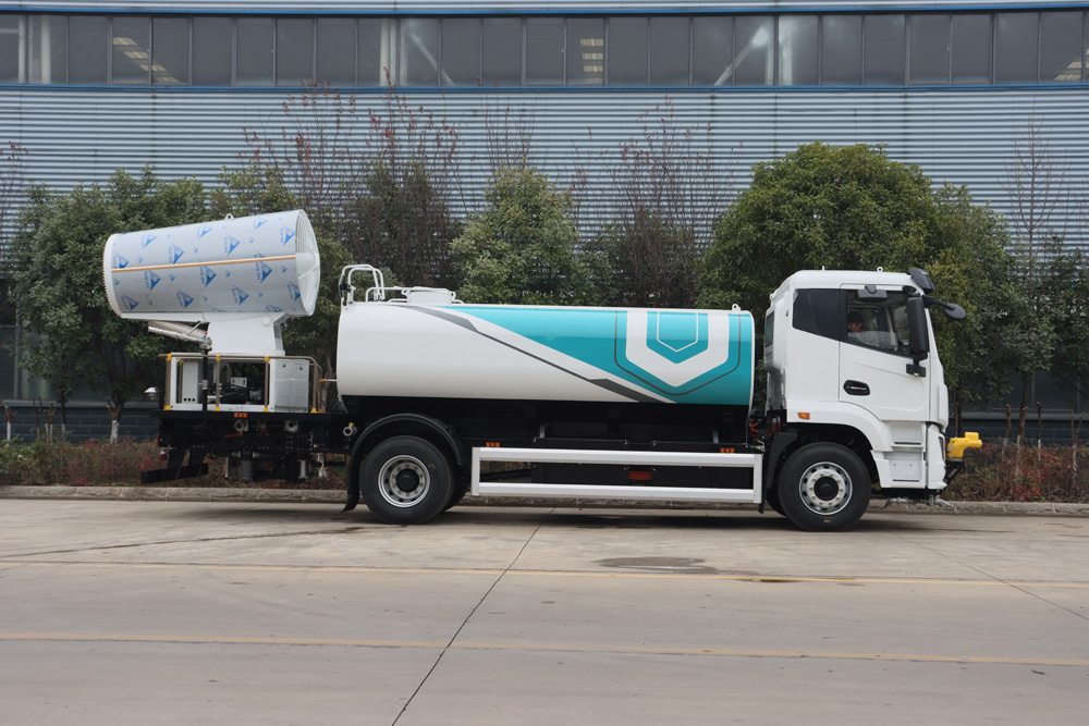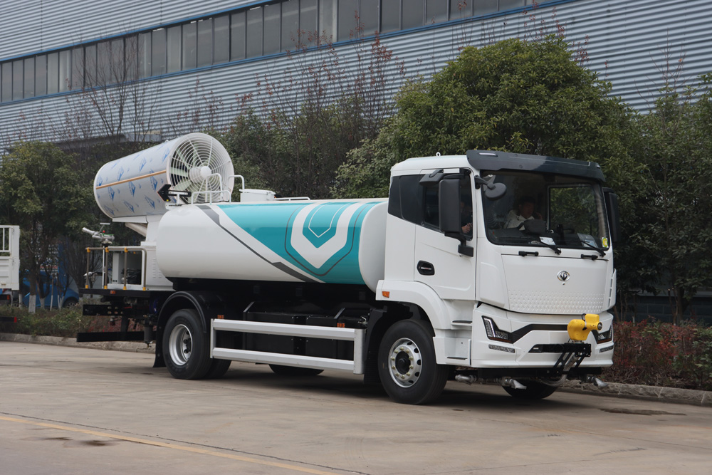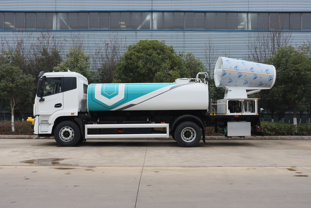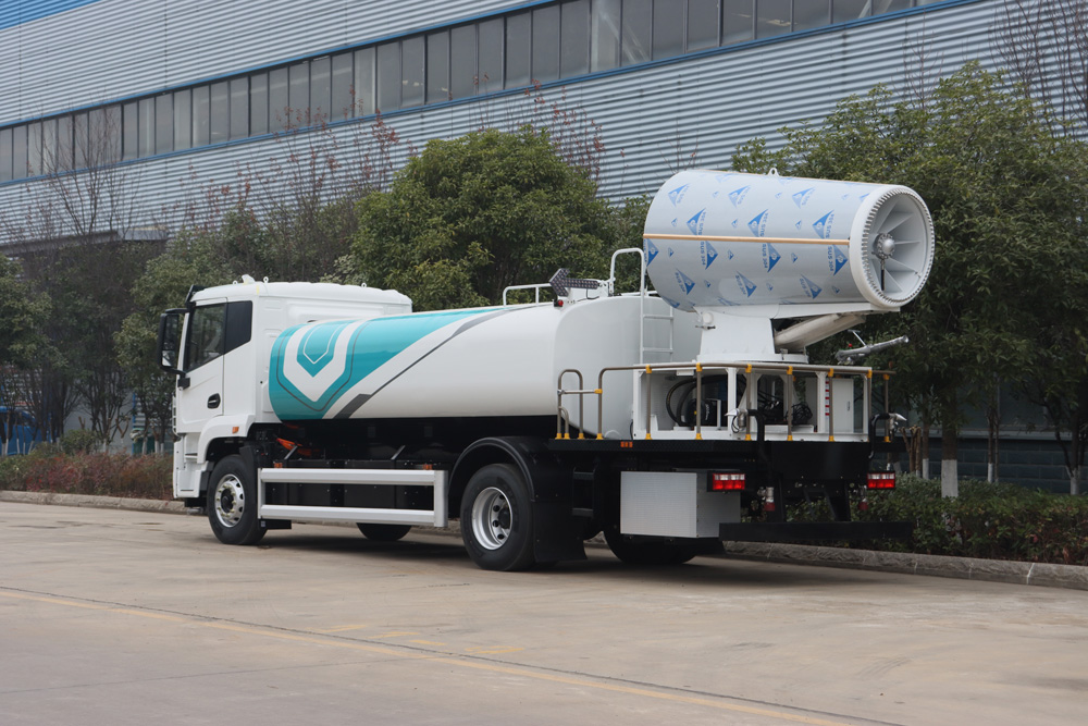 整車具備前噴、對沖、后灑、側(cè)噴、綠化水炮、霧炮,外接手動噴槍等多種作業(yè)功能,均可單 獨或組合使用,罐體有效容積 9.65m³ , 同級別行業(yè)最大;