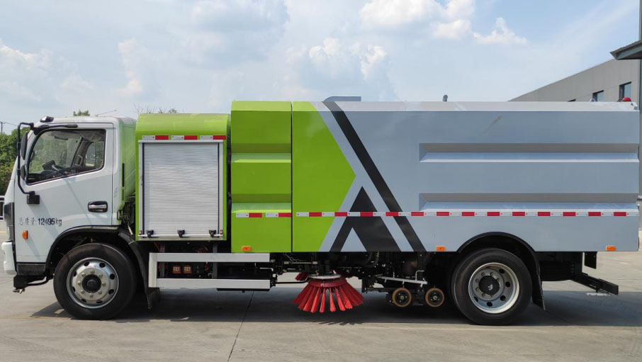 7、程力牌純電動洗掃車具有路面清洗、路面清掃、路緣清洗、路緣和路緣石立面洗刷、低壓沖洗、噴霧除塵等多功能。有“全洗掃”、 “左洗掃”、 “右洗掃”、 “全掃”、 “左掃”、 “右掃”等多種作業模式可選擇。選擇“全洗掃”模式清洗廣場和路面,清洗效率高效果好,洗凈率達90%以上。選擇“左洗掃”或“右洗掃”模式清洗路面和路緣、洗刷路緣石立面。需要進行路面清掃或路面保潔作業時,可選擇掃路模式。需要噴霧除塵時,可開啟噴霧裝置,進行噴霧除塵作業。