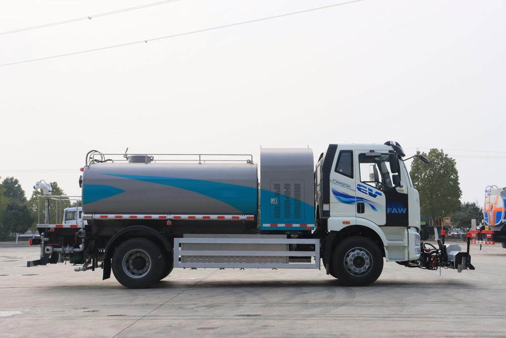 1. 純電動路面清洗車是一種雙水泵清洗車,是在標準純電動二類底盤的基礎上,加裝高壓沖洗系統、低壓沖洗系統,由機械、液壓、電器三部分合為一體的專用沖洗作業車。