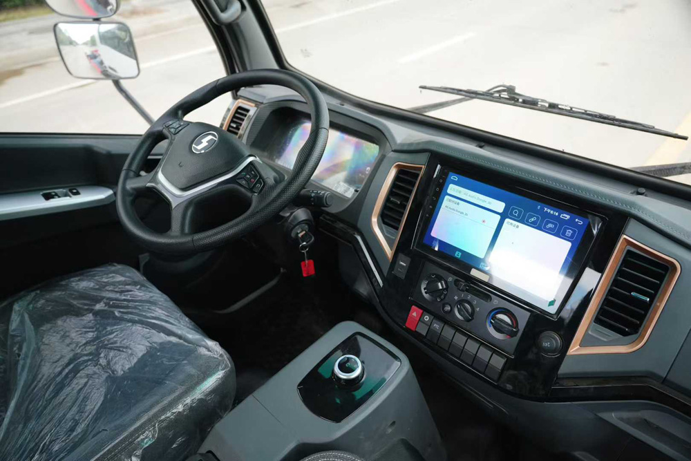一、底盤配置: 采用陜汽 SX3120EV321N車身,配置玉柴TZ375XSSF-SZF614發(fā)動機185/252馬力,國六排放標準,軸距3200(mm),整備質(zhì)量5.4噸,額定載質(zhì)量6.465噸,五擋變速箱,帶動力轉(zhuǎn)向,帶原廠空調(diào),該車上黃牌,城區(qū)道路請注意限行標識。