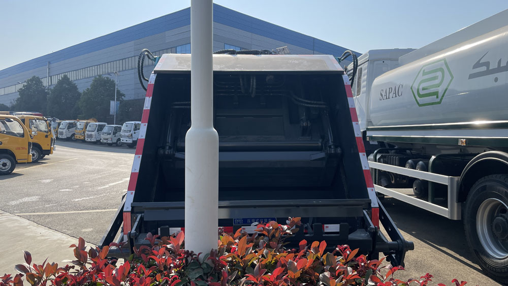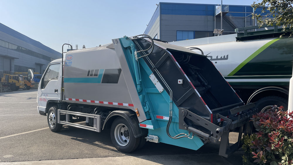 二、上裝配置: 新款平板或弧形箱體,式樣美觀,箱體全滿焊,5-8方箱體厚度邊4底4,10-12方邊4底5,12方以上邊5底5,采用國內(nèi)著名品牌配件,揚(yáng)州中煤或合肥長源油泵和液壓多路換向閥、博利或海普瑞斯油缸,杰特高密度液壓油管,帶掛桶或三角斗翻轉(zhuǎn)進(jìn)料,翻轉(zhuǎn)機(jī)構(gòu)可以翻轉(zhuǎn)國標(biāo)120、240垃圾桶,帶壓縮推板,后蓋帶液壓鎖緊。PLC一鍵操控系統(tǒng),可駕駛室內(nèi)和室外雙電控操作,方便實用。尾部帶密封橡膠墊,污水收集箱,可防污水滴漏二次污染。